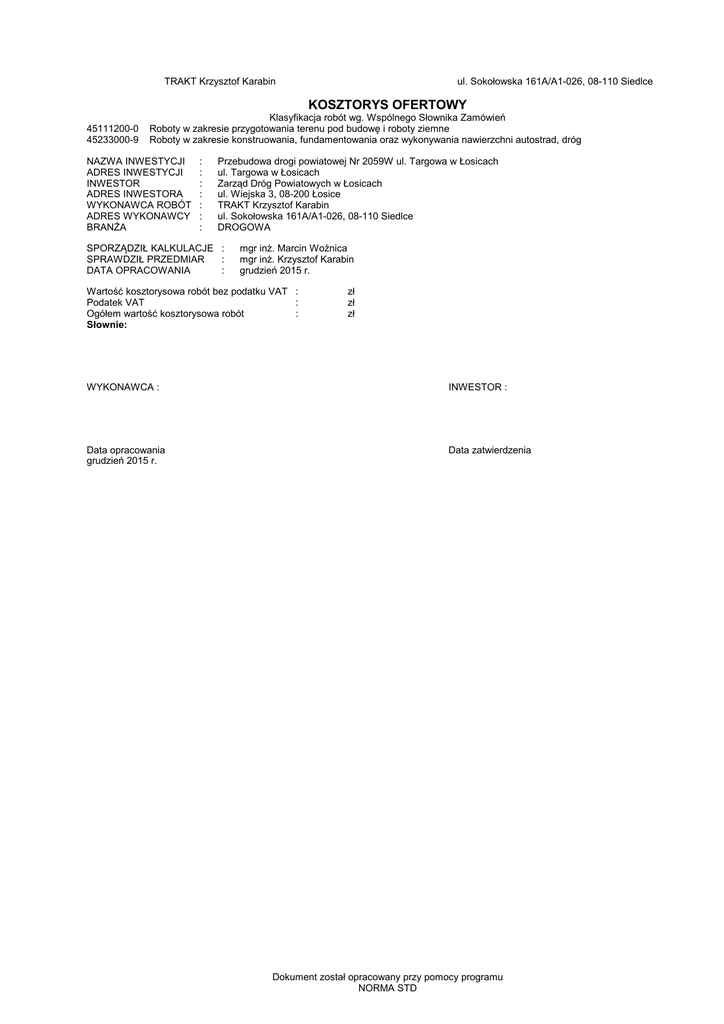 kosztorys ofertowy - Zarząd Dróg Powiatowych w Łosicach