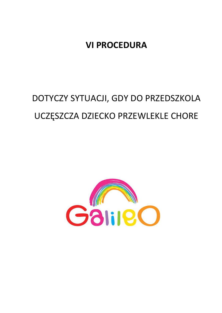 VI PROCEDURA DOTYCZY SYTUACJI, GDY DO PRZEDSZKOLA