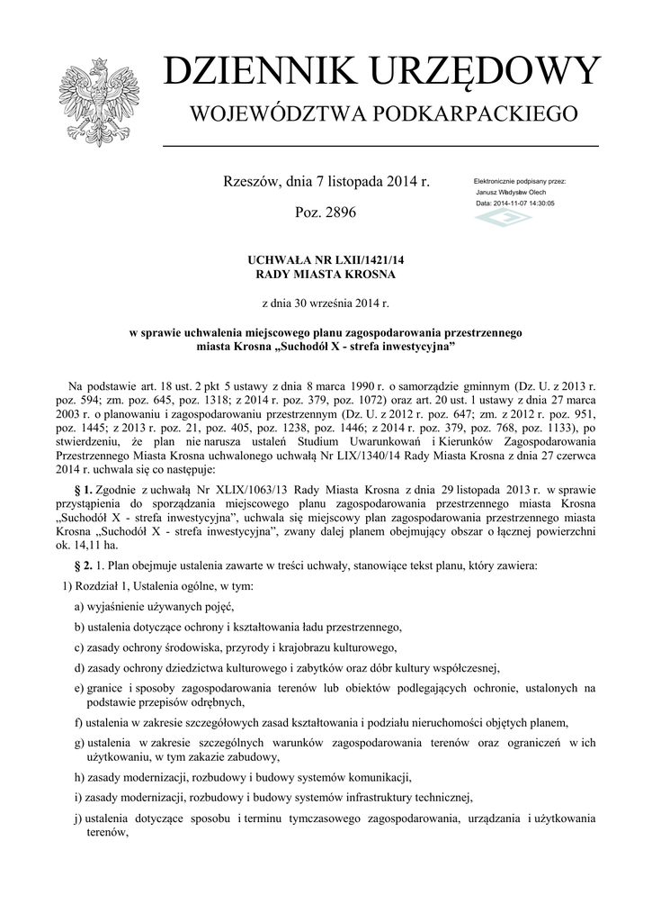 Uchwała Nr LXII/1421/14 z dnia 30 września 2014 r.