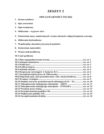 ZESZYT 2 SPIS ZAWARTOŚCI TECZKI 1. Strona tytułowa 2. Spis zawartości 3. Opis techniczny 4. Obliczenia – wygrzew sieci 5. Zestawienie mocy zamówionych i wykaz obszarów objętych planem rozwoju. 6. Obliczenia hydrauliczne 7. Współrzędne charakterystycznych punktów 8. Zestawienie materiałów 9. Wykaz stali profilowej 10. Część graficzna 10.1 Plan zagospodarowania terenu........................................................... rys. nr 1 10.2 Schemat montażowy ............................................................................ rys. nr 2 10.3 Profil sieci ............................................................................................. rys. nr 3 10.4 Profil przyłączy .................................................................................... rys. nr 4 10.5 Schemat alarmu ................................................................................... rys. nr 5 10.6 Dyspozycja rurociągów w komorze K-2 ............................................ rys. nr 6 10.7 Szczegół przejścia przez ul. Mleczarską ............................................ rys. nr 7 10.8 Połączenie proj. sieci preizolowanej z istn. siecią kanałową ............ rys. nr 8 10.9 Wymiary wykopów .............................................................................. rys. nr 9 10.10 Studnia zaworów preizolowanych odcinających S1 – S2............... rys. nr 10 10.11 Zabezpieczenie istniejącego uzbrojenia – AROT ........................... rys. nr 11 10.12 Zabezpieczenie istniejącego uzbrojenia – INTEGRA .................... rys. nr 12 10.13 Przejście przez ścianę ........................................................................ rys. nr 13 10.14 Szczegół montażu pudełka UB.......................................................... rys. nr 14 10.15 Podłączenie pudełka UB .................................................................... rys. nr 15 10.16 Szczegół montażu drabiny ................................................................ rys. nr 16 Opis techniczny do projektu budowlanego „Modernizacji i przebudowy wysokoparametrowej sieci ciepłowniczej kanałowej w ul. Mleczarskiej w Ciechanowie - odcinek od punktu "A" w ul. Mleczarskiej do "E" w ul. Mazowieckiej – ETAP I” 1. Podstawa opracowania - Zlecenie Inwestora, Warunki PEC TR 2231-01/13 z dn. 26.02.12 1. W punkcie j.w. dane bilansowe PEC odn. sieci istniejącej (przekazane Panom)dołączyć do opracowania 2. W punkcie j.w. perspektywiczny obszar zasilania z projektowanej sieci (przekazane Panom)-dołączyć do opracowania - Obowiązujące normy i przepisy krajowe, Normy PN EN-253; 448; 488; 489; Norma DS 448 z kwietnia 1994, Katalogi producentów rur preizolowanych 2. Przedmiot i zakres opracowania Przedmiotem opracowania jest: - modernizacja i przebudowa odcinka sieci ciepłowniczej z rur stalowych preizolowanych o średnicy 2φ219,1/315mm od punktu „PODZ.” do punktu „E” w pobliżu punktu stałego PS-14 na sieci kanałowej przy ul. Mazowieckiej w Ciechanowie wraz z przełączeniem istniejących przyłączy. Maksymalna temperatura pracy rurociągów 130/70°C Zakres opracowania obejmuje: - przebudowa odcinka ciepłowniczej sieci kanałowej DN250 mm na sieć z rur stalowych preizolowanych o średnicy 2φ219,1/315 mm od punktu PODZ. do punktu E (połączenie z istniejącą siecią kanałową w pobliży punktu stałego zlokalizowanego w pasie drogowym ul. Mazowieckiej) o łącznej długości L=334,91 m, - przebudowa przyłącza ciepłowniczego z rur preizolowanych elastycznych na rury preizolowane stalowe o średnicy 2φ60,3/125 mm od punktu S1 (zawory preizolowane) do punktu B (połączenie z istniejącym przyłączem) o długości L=28,81m, oraz połączenie przyłącza od punktu S1 do punktu Tr1 ( istniejąca sieć kanałowa) rurą stalową 60,3x2,9 o długości L=4,60m. - przebudowa przyłącza ciepłowniczego z rur preizolowanych o średnicy 2φ33,7/90 mm od projektowanej sieci w punkcie Tp2 (włączenie w obrębie komory K2) do punktu C (połączenie z istniejącym przyłączem) o długości L=27,61m. - włączenie istniejących rurociągów preizolowanych 2φ139,7/225 mm od projektowanej sieci w punkcie Tp3 (włączenie w obrębie komory K2) do punktu D o długości L=1,52m. - włączenie istniejących rurociągów preizolowanych 2φ76,1/140 mm od projektowanej sieci w punkcie Tp4 (projektowany trójnik preizolowany z uskokiem 219,1/76,1 mm) do punktu S2 o długości L=1,50m. Do modernizacji i przebudowy sieci przewidziano rury preizolowane stalowe w izolacji STANDARD z instalacją alarmową impulsową. 3. Opis 3.1 Stan istniejący Obecnie wzdłuż ul. Mazowieckiej oraz części Mleczarskiej przebiega kanałowa sieć sześcioprzewodowa 2xDN250, 2xDN125 oraz sieć parowa DN200/65. Rury umieszczone są w kanale betonowym o wymiarach 1,8x1,25m przykrywanych płytą. Na odcinku ok. 115 m od komory NK-25 sieć zbudowana jest jako dwuprzewodowa z rur 2xDN200. Na sieci znajduje się 7 komór, z czego 5 przewidzianych jest do likwidacji, jedna - K2 do adaptacji oraz NK-25 do pozostawienia bez zmian. Od istniejącej sieci zasilana są 4 przyłącza. Sieć znajduje się w pasie drogowym ul. Mazowieckiej i Mleczarskiej oraz częściowo na terenie zakładu Delitissu. 3.2 Prowadzenie rurociągów Z uwagi na projektowaną przebudowę infrastruktury drogowej zaistniała potrzeba przebudowy istniejącej sieci kanałowej na rurociągi preizolowane. Zgodnie z wytycznymi Inwestora na odcinku pomiędzy punktem „A” a punktem połączenia z istniejącą kanałową siecią ciepłowniczą w punkcie „E” projektuje się rurociągi preizolowane 2x219,1/315 mm. Inwestycja podzielona zostanie na dwa: ETAP I – od punktu PODZ. do punktu E wraz z wymianą przyłączy odcinek realizowany w pasie drogowym w powiązaniu z przebudową ul. Mleczarskiej. ETAP II – od punktu A (granica ternu kolejowego) do połączenia z preizolowaną sieci w punkcie PODZ. Sieć przebiegać bę