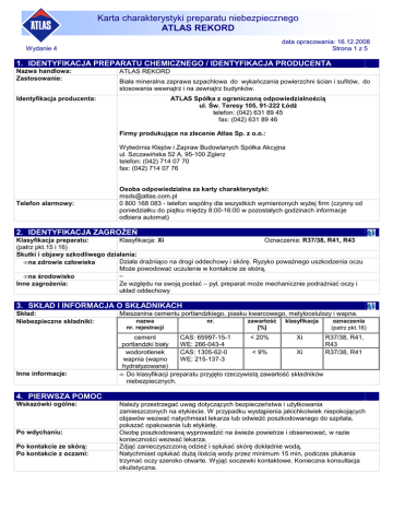 Karta charakterystyki preparatu niebezpiecznego ATLAS REKORD