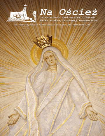 Na Oścież Miesięcznik Sanktuarium i Parafii Matki Boskiej Królowej Męczenników Nr 3(214) Bydgoszcz-Fordon marzec 2014 Rok XXI ISSN 1505-7151 X lat Diecezji W uroczystość Zwiastowania Pańskiego, 25 marca 2004 r. Ojciec Święty Jan Paweł II w duchu pasterskiej troski o Kościół w Polsce - realizując założenia bulli Totus Tuus Poloniae populus (25.03.1992) powołał do istnienia diecezję bydgoską. Postanowił, by składała się z 12 dekanatów archidiecezji gnieźnieńskiej, 3 dekanatów diecezji pelplińskiej i 1 dekanatu diecezji koszalińskokołobrzeskiej. Patronami diecezji są: Matka Boża Pięknej Miłości i bł. Michał Kozal, a katedrą kościół św. Marcina i św. Mikołaja w Bydgoszczy; diecezja została włączona do metropolii gnieźnieńskiej. Zatem 25 marca 2014 roku minie 10 lat od narodzin naszej diecezji. Niech ta rocznica przypomni nam najpierw znaczenie powstania diecezji dla życia religijnego i społecznego. Diecezję stanowi część Ludu Bożego powierzona pasterskiej pieczy biskupa, w której prawdziwie jest obecny i spełnia swe posłannictwo jeden, święty, powszechny i apostolski Kościół. Kościół jest znakiem obecności i działania wśród ludzi Jezusa Chrystusa - Jedynego Zbawiciela świata. Dla pełnienia swej misji Kościół otrzymał od swego Założyciela apostołów i ich M n ożna ie czytać ... Głównym tematem aktualnego wydania „Na Oścież” jest hasło „X lat Diecezji Bydgoskiej”. Obok zamieszczono refleksje ks. Proboszcza na ten temat oraz szczegółowy plan uroczystości w dniu 25. marca br. Rozmowę miesiąca przeprowadzono z doktorem sztuki Sylwestrem Piędziejewskim, który wraz grupą artystów prowadzi prace upiększające wnętrze naszej świątyni. W rozmowie poznajemy różne szczegóły z życia artysty, jak też zmagania związane z powstającymi obrazami i... choć jest długa, warto ją przeczytać. Trwa Wielki Post. Z tej okazji zamieszczono Słowo do diecezjan ks. bpa Ordynariusza, tekst na temat Gorzkich Żali i plan wielkopostnych nabożeństw. Treść wydania uzupełniają relacje z wydarzeń w grupach i wspólnotach parafialnych oraz stałe działy. Niezwykle trafnej odpowiedzi - czym jest post w Wielkim Poście - udziela jednej z czytelniczek ks. Melchisedec. Dobrego czasu nawrócenia i pokuty życzy Fred w numerze m.in.: Gorzkie Żale (s. 9) List na Wielki Post (s. 10) XXX lat Kościoła Domowego w Parafii (s. 13) w następnych numerach: O jubileuszu X-lecia Diecezji Bydgoskiej Rozmowa z rekolekcjonistą ks. Rafałem Sikorskim str. 1, odnowione prezbiterium - fragment płaskorzeźby Matki Boskiej Królowej Męczenników, fot. Mieczysław Pawłowski 2 3/2014 Na Oścież Proboszczowskie zamyślenia następców - biskupów. Zostali obdarzeni specjalną łaską Ducha Świętego i powołani, by we współpracy z kapłanami i wszystkimi wiernymi umacniać wiarę i budować żywą wspólnotę Kościoła. Dokonuje się to w diecezji, która obejmuje parafie, rodziny i inne znajdujące się w niej społeczności. Powołanie do istnienia diecezji ma na celu wzrost i umocnienie Kościoła, który jednoczy ludzi z Chrystusem i między sobą. Poprzez instytucje diecezjalne Kościół służy ludziom w sprawach zbawienia, wpływa na uszlachetnienie człowieka, rodziny i społeczeństwa. 10. rocznica powstania diecezji skłania nas do uwielbienia Wszechmogącego Boga i wyrażenia Mu dziękczynienia za to, że przez Kościół, jaki stanowimy, dokonuje się zbawienie człowieka i wiele dobra dla społeczeństwa. Rocznica ta jest szczególną okazją do podziękowania Panu za wszystko, co zdołaliśmy zrobić dla umocnienia i rozwoju Kościoła jako wspólnoty diecezjalnej. W tworzeniu i rozwoju duchowych i materialnych struktur diecezji odczuwamy na każdym kroku pomoc Bożej Opatrzności; doświadczamy nieustannej opieki Matki Bożej Pięknej Miłości; naszych Świętych Patronów i życzliwości wielu ludzi. Rocznica, jaką będziemy obchodzić, budzi w sercu potrzebę podziękowania wiernym, którzy troszczą się o istniejące na terenie diecezji wspólnoty parafialne, dbają o swoje świątynie, troszczą się o niezbędne dla diecezji instytucje: Bydgoską Kurię Biskupią; Wyższe Seminarium Duchowne i związane z nim ośrodki kształcenia ludzi świeckich, szkołę katolicką, instytucję Caritas przychodzącą z pomocą dzieciom, młodzieży, wielu biednym rodzinom, chorym i starszym, a także inne miejsca służące umocnieniu wiary i niesieniu pomocy ludziom. Te ważne struktury mogą istnieć i rozwijać się dzięki modlitwie i ofiarności wielu wiernych z diecezji i spoza jej granic. Pamiętamy, że w tym roku, w którym świętujemy 10-lecie istnienia diecezji, przypada także piąta rocznica konsekracji ks. arcybiskupa Jana Romeo Pawłowskiego w Sanktuarium Królowej Męczenników - miejscu szczególnej czci Matki Najświętszej. Serdecznie zapraszam na główne uroczystości dziękczynnego uwielbienia Boga: „Te Deum Laudamus”, które przeżywać będziemy 25 marca br. w naszym Sanktuarium. ks. proboszcz Jan PROGRAM UROCZYSTOŚCI X - LECIA DIECEZJI BYDGOSKIEJ Bydgoszcz, 25 marca 2014 r., parafia MB Królowej Męczenników i Sanktuarium Kalwarii Bydgoskiej Golgoty XX Wieku 10.00 Nabożeństwo „Czuwanie z Maryją”. Modlitwy prowadzi młodzież z DA „Martyria” i Fundacji „Wiatrak” 11.00 POWITANIE GOŚCI – ks. bp Jan Tyrawa KONCERT POŁĄCZONYCH CHÓRÓW BYDGOSKICH Z ORKIESTRĄ FILHARMONIKÓW BYDGOSKICH; Występują chóry parafii: Polskich Braci Męczenników, św. Jadwigi Królowej i Matki Boskiej Królowej Męczenników. W programie: „Tu Es Petrus” - ks. Wacław Gieburowski; „Miserere” - Antonio Lotti; „Ave Verum Corpus” - Wolfgang Amadeus Mozart „X LAT DIECEZJI BYDGOSKIEJ” – wykład ks. prałata dra Lecha Bilickiego Kanclerza Kurii Bydgoskiej PRZYGOTOWANIE DO MSZY ŚW. Księża biskupi przygotowują się w zakrystii, a kapłani w kaplicy, Koncert CHÓRÓW 