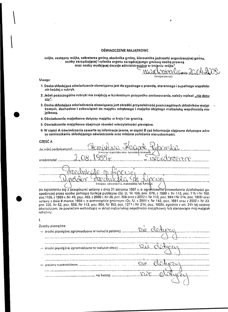 '. jljtkowij. 4. Oswiadczenlc mal!)tkowfl dotyczy majl'ltku w kraju i za grani0'l.