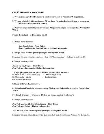 2. Występ młodzieży Gimnazjum nr 58 im. Jana Nowaka-Jeziorańskiego w programie