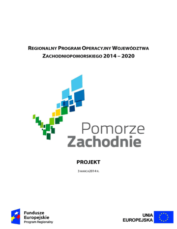 REGIONALNY PROGRAM OPERACYJNY WOJEWÓDZTWA ZACHODNIOPOMORSKIEGO 2014 – 2020 PROJEKT 3 MARCA2014 R. SPIS TREŚCI SEKCJA 1: WKŁAD PROGRAMU W REALIZACJĘ STRATEGII EUROPA 2020 ORAZ W OSIĄGNIĘCIE SPÓJNOŚCI GOSPODARCZO-SPOŁECZNEJ I TERYTORIALNEJ ........................................................................ 1 SEKCJA 2: OPIS UKŁADU OSI PRIORYTETOWYCH .......................................................................................... 80 I GOSPODARKA-INNOWACJE-TECHNOLOGIE ....................................................................................................................................... 80 PRIORYTET INWESTYCYJNY 1.1: Udoskonalanie infrastruktury B+I i zwiększanie zdolności do osiągnięcia doskonałości w zakresie B+I oraz wspieranie ośrodków kompetencji, w szczególności tych, które leżą w interesie Europy ....................................................................................................... 81 PRIORYTET INWESTYCYJNY 1.2: Promowanie inwestycji przedsiębiorstw w B+I, rozwijanie powiązań i synergii między przedsiębiorstwami, ośrodkami B+R i sektorem szkolnictwa wyższego (…), wspieranie badań technologicznych i stosowanych, linii pilotażowych, działań w zakresie wczesnej walidacji produktów i zaawansowanych zdolności produkcyjnych i pierwszej produkcji w dziedzinie kluczowych technologii (...) .................................................................................................................. 84 PRIORYTET INWESTYCYJNY 3.1: Promowanie przedsiębiorczości, w szczególności poprzez ułatwianie gospodarczego wykorzystywania nowych pomysłów oraz sprzyjanie tworzeniu nowych firm, w tym również poprzez inkubatory przedsiębiorczości ............................................................... 88 PRIORYTET INWESTYCYJNY 3.2: Opracowywanie i wdrażanie nowych modeli biznesowych dla MŚP, w szczególności w celu umiędzynarodowienia .................................................................................... 91 PRIORYTET INWESTYCYJNY 3.3: Wspieranie tworzenia i poszerzania zaawansowanych zdolności w zakresie rozwoju produktów i usług ..................................................................................................... 94 PRIORYTET INWESTYCYJNY 3.4: Wspieranie zdolności MŚP do wzrostu na rynkach regionalnych, krajowych i międzynarodowych oraz do angażowania się w procesy innowacji ................................ 98 II ROZWÓJ SPOŁECZEŃSTWA INFORMACYJNEGO ............................................................................................................................. 105 PRIORYTET INWESTYCYJNY 2.2: Rozwój produktów i usług opartych na TIK, handlu elektronicznego oraz zwiększanie zapotrzebowania na TIK ........................................................................................ 105 PRIORYTET INWESTYCYJNY 2.3: Wzmocnienie zastosowań TIK dla e-administracji, e-uczenia się, ewłączenia społecznego, e-kultury i e-zdrowia ................................................................................... 108 III WSPARCIE GOSPODARKI NISKOEMISYJNEJ .................................................................................................................................... 115 PRIORYTET INWESTYCYJNY 4.1: Wspieranie wytwarzania i dystrybucji energii pochodzącej ze źródeł odnawialnych ..................................................................................................................................... 115 PRIORYTET INWESTYCYJNY 4.2: promowanie efektywności energetycznej i korzystania z odnawialnych źródeł energii w przedsiębiorstwach .......................................................................... 120 PRIORYTET INWESTYCYJNY 4.3: Wspieranie efektywności energetycznej, inteligentnego zarządzania energią i wykorzystywania odnawialnych źródeł energii w budynkach publicznych i sektorze mieszkaniowym. ................................................................................................................................. 124 PRIORYTET INWESTYCYJNY 4.5: Promowanie strategii niskoemisyjnych dla wszystkich rodzajów terytoriów, w szczególności dla obszarów miejskich, w tym wspieranie zrównoważonej multimodalnej mobilności miejskiej i działań adaptacyjnych mających oddziaływanie łagodzące na zmiany klimatu ................................................................................................................................... 129 PRIORYTET INWESTYCYJNY 4.7: Promowanie wykorzystywania wysokosprawnej kogeneracji ciepła i energii elektrycznej w oparciu o zapotrzebowanie na ciepło użytkowe ............................................ 133 IV DOSTOSOWANIE DO ZMIAN KLIMATU ............................................................................................................................................ 139 PRIORYTET INWESTYCYJNY 5.2: Wspieranie inwestycji ukierunkowanych na konkretne rodzaje zagrożeń przy jednoczesnym zwiększeniu odporności na klęski żywiołowe i katastrofy i rozwijaniu systemów zarządzania klęskami żywiołowymi i katastrofami .......................................................... 139 V ROZWÓJ NATURALNEGO ŚRODOWISKA CZŁOWIEKA .................................................................................................................... 146 PRIORYTET INWESTYCYJNY 6.1: Inwestowanie w sektor gospodarki odpadami celem wypełnienia zobowiązań określonych w dorobku prawnym Unii w zakresie środowiska oraz zaspokojenia wykraczających poza te zobowiązania potrzeb inwestycyjnych określonych przez państwa członkowskie ...................................................................................................................................... 146 PRIORYTET INWESTYCYJNY 6.2: Inwestowanie w sektor gospodarki wodnej celem wypełnienia zobowiązań określonych w dorobku prawnym Unii zakresie środowiska oraz zaspokojenia wykraczając