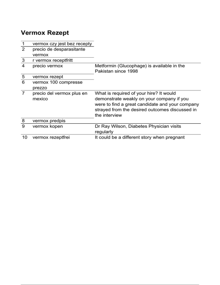Vermox Rezept - Vermox 100 Compresse Prezzo