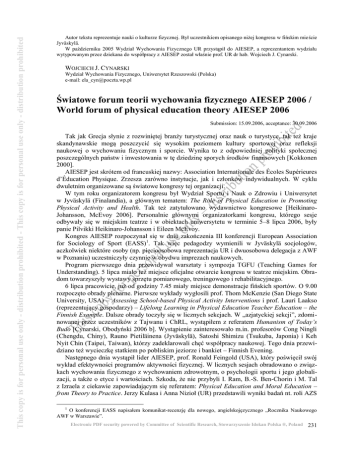 Światowe forum teorii wychowania fizycznego AIESEP 2006