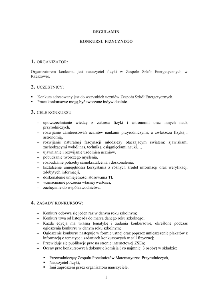1 REGULAMIN KONKURSU FIZYCZNEGO 1. ORGANIZATOR