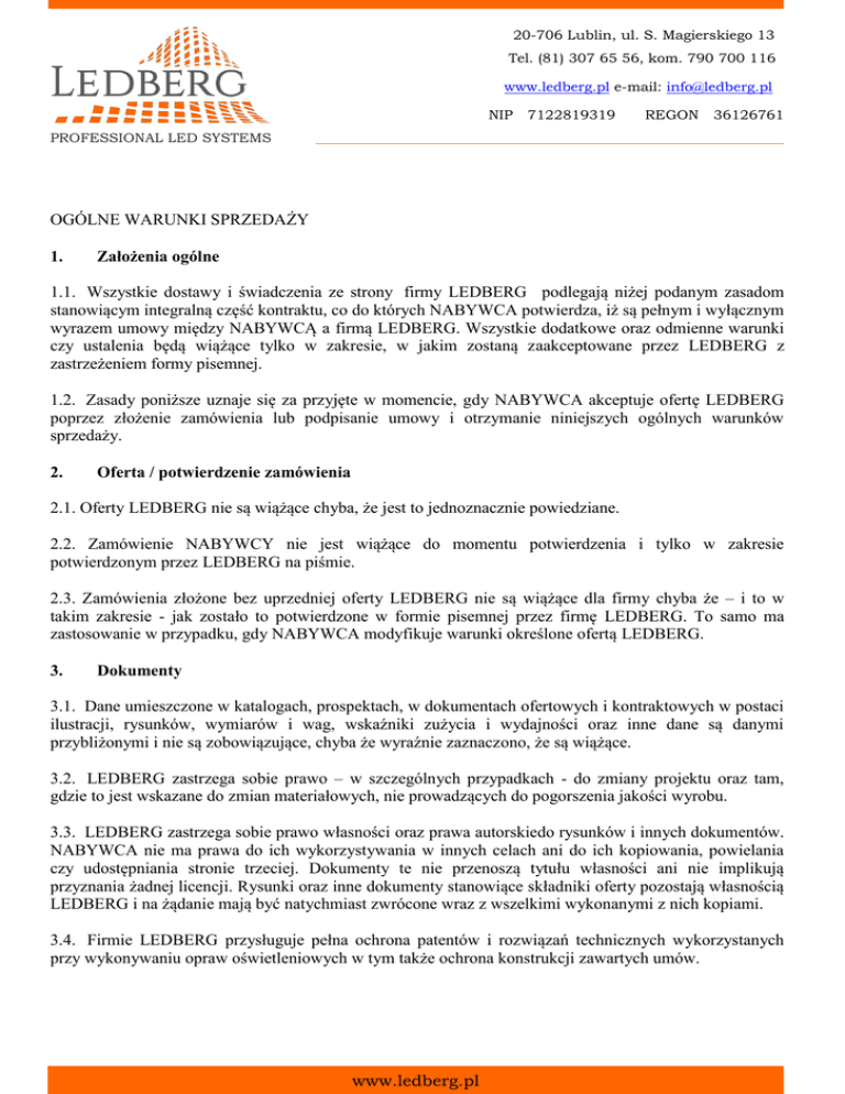www.ledberg.pl OGÓLNE WARUNKI SPRZEDAŻY 1. Założenia