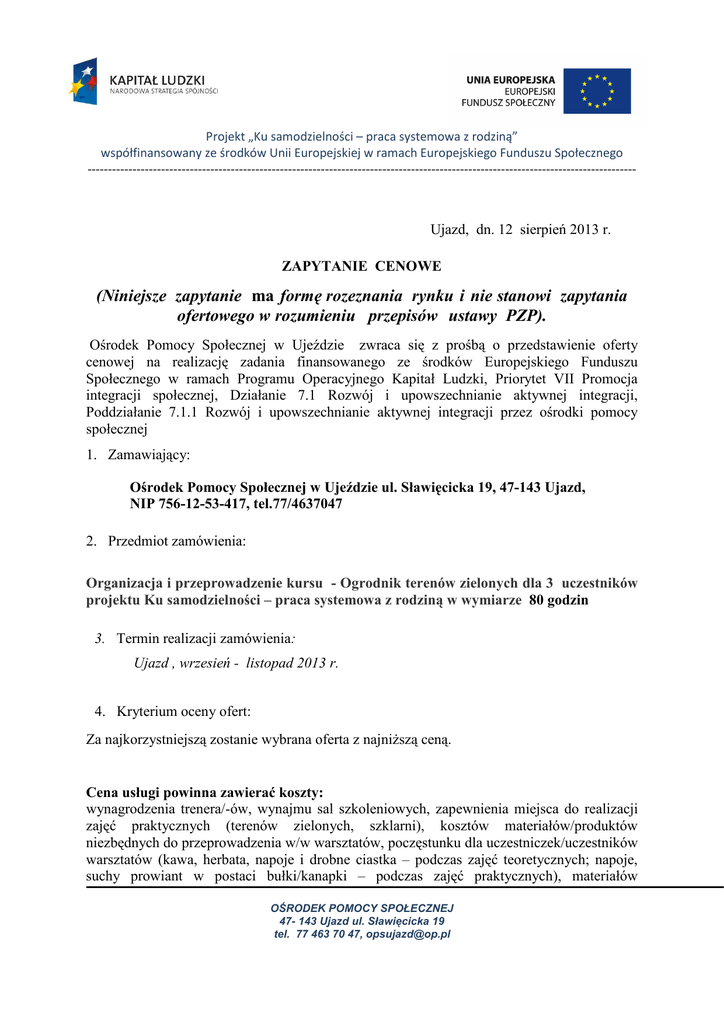 Zapytanie cenowe - Ośrodek Pomocy Społecznej w Ujeździe