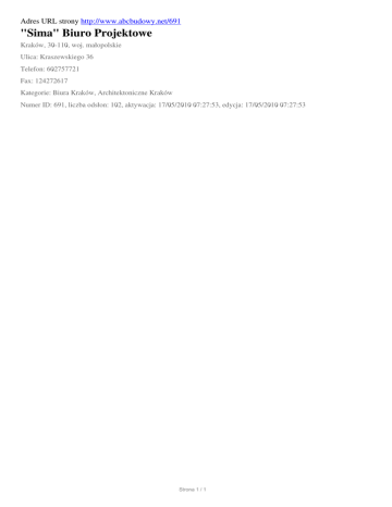 "Sima" Biuro Projektowe, Krakow, Kraszewskiego 36