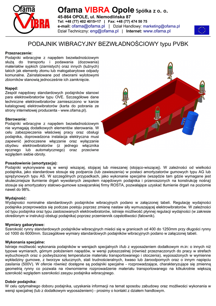 PODAJNIK WIBRACYJNY BEZWŁADNOŚCIOWY typu PVBK
