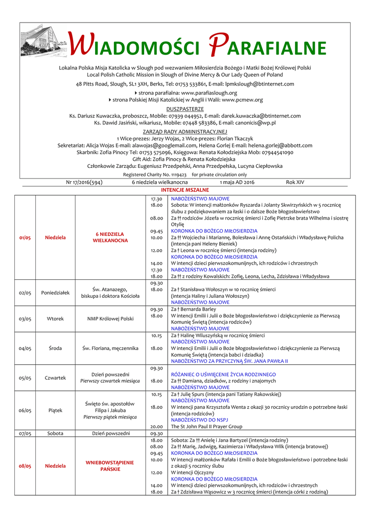Wiadomości Parafialne - Lokalna Polska Misja Katolicka w Slough
