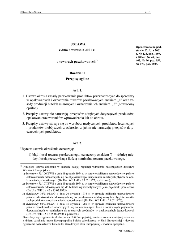 2005-08-22 USTAWA z dnia 6 września 2001 r. o