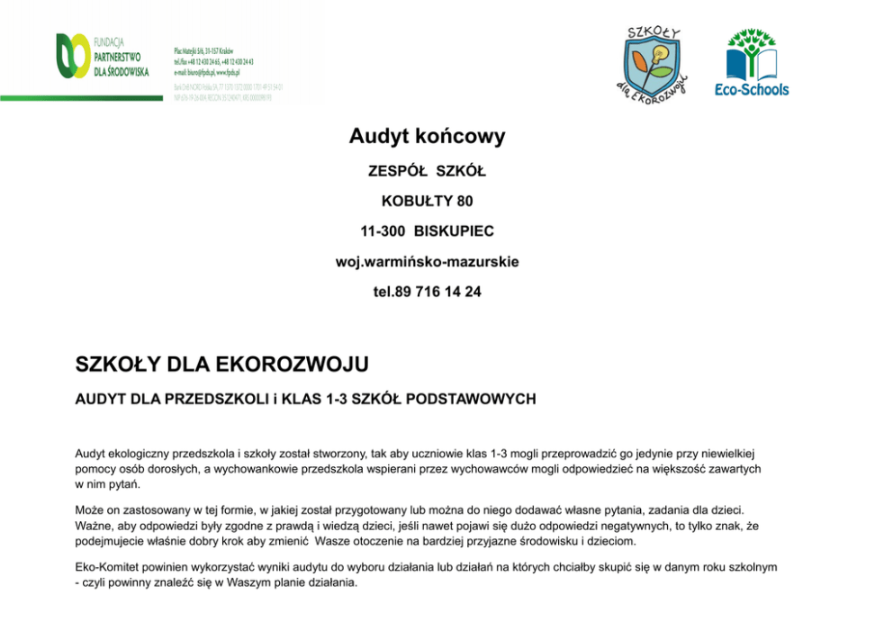 Audyt końcowy SZKOŁY DLA EKOROZWOJU