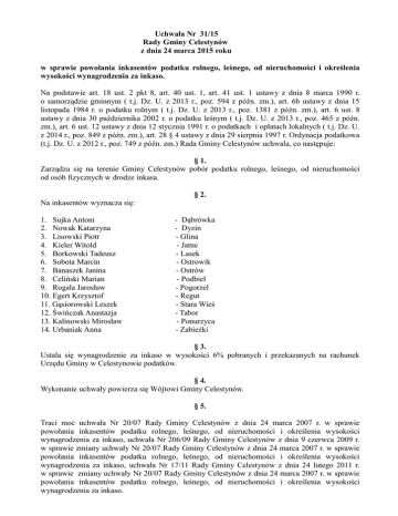 Uchwała Nr 31/15 Rady Gminy Celestynów z dnia 24 marca 2015