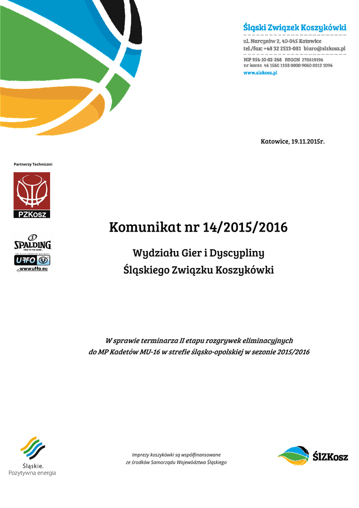 Komunikat nr 14/2015/2016 - Śląski Związek Koszykówki