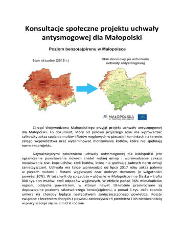 Konsultacje społeczne projektu uchwały antysmogowej dla Małopolski