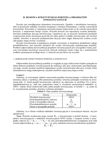 ii. budowa efektywnego portfela projektów inwestycyjnych