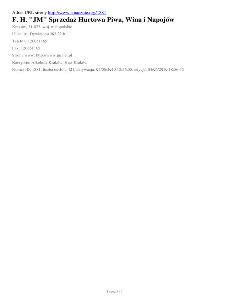 FH "JM" Sprzedaz Hurtowa Piwa, Wina i Napojow