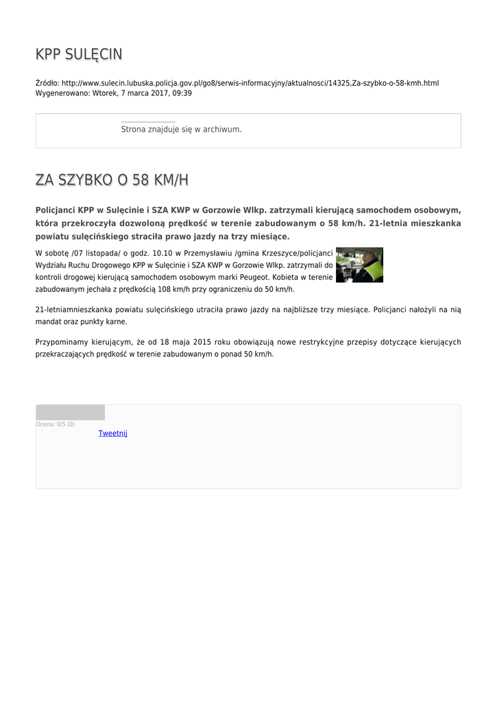 KPP SULĘCIN ZA SZYBKO O 58 KM/H