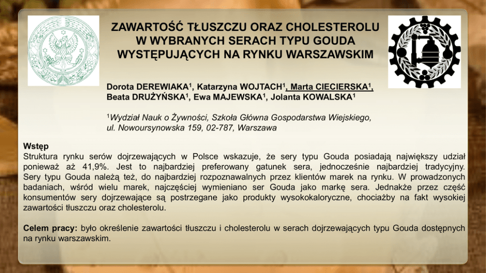 Zawartość tłuszczu oraz cholesterolu w wybranych serach typu