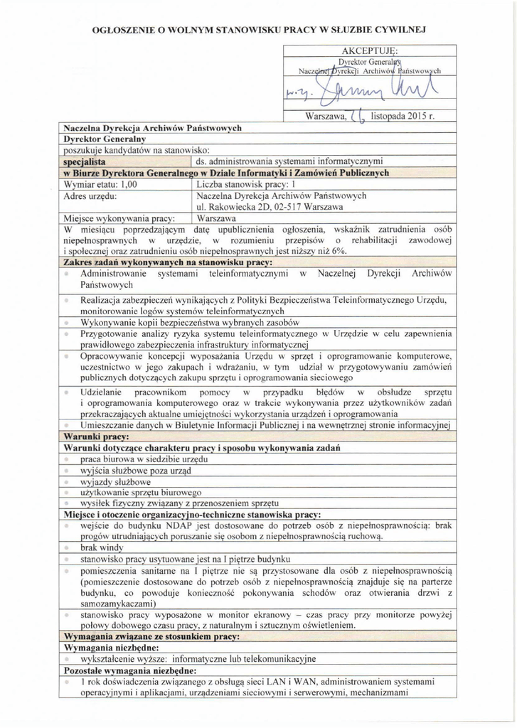 Administrowan ie systemami te leinformatycznymi w Nacze lnej Dyrekcji Archiwow