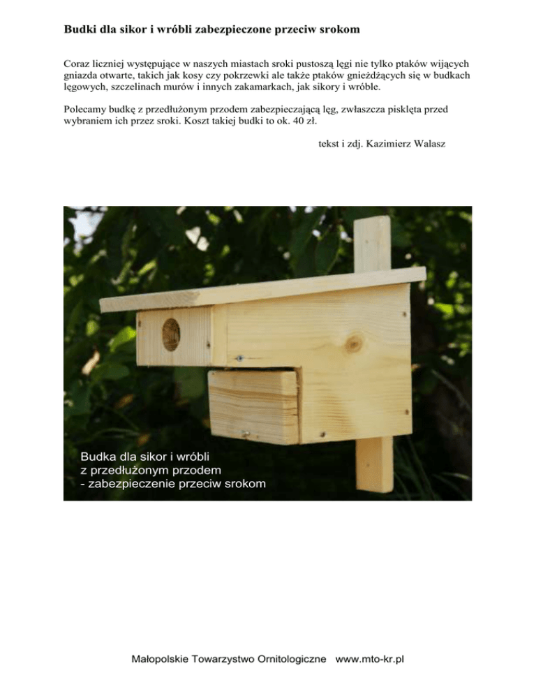Budki dla sikor i wróbli zabezpieczone przeciw srokom Budka dla