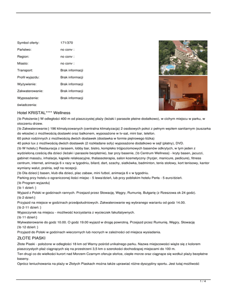 Hotel KRISTAL**** Wellness ZŁOTE PIASKI