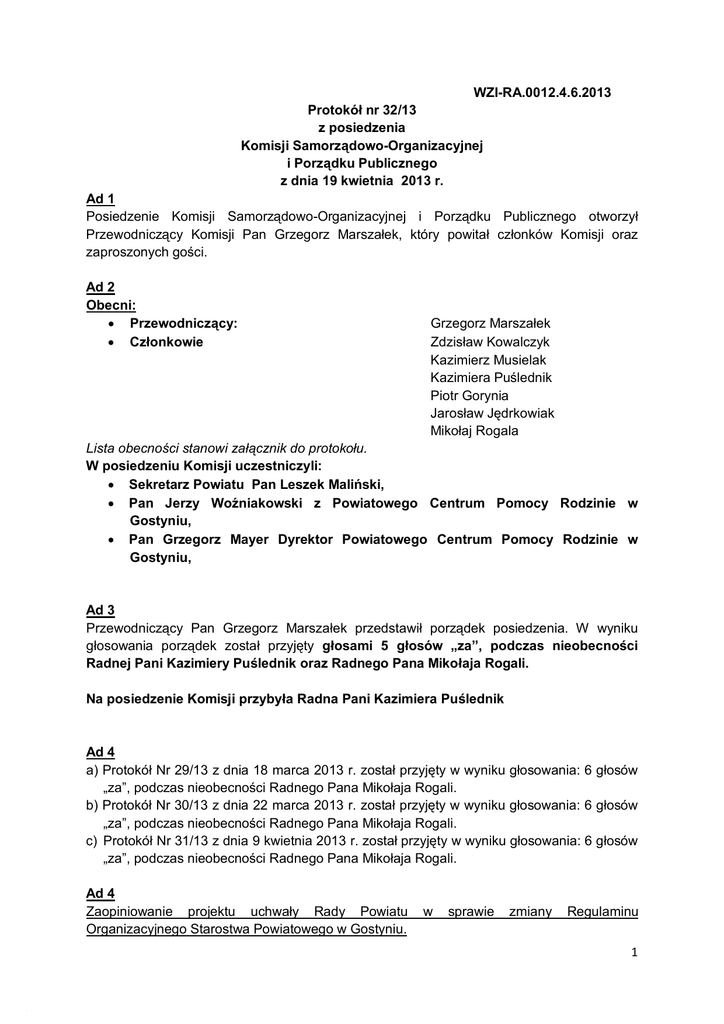 1 WZI-RA.0012.4.6.2013 Protokół nr 32/13 z posiedzenia Komisji