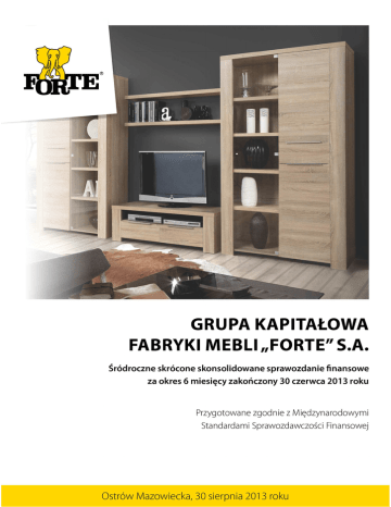 SPIS TREŚCI Śródroczny Skrócony Skonsolidowany Rachunek Zysków i Strat ..................................................................................3 Śródroczne Skrócone Skonsolidowane Sprawozdanie z Całkowitych Dochodów ............................................................4 Śródroczne Skrócone Skonsolidowane Sprawozdanie z Sytuacji Finansowej (Bilans) .....................................................5 Śródroczne Skrócone Skonsolidowane Sprawozdanie z Przepływów Pieniężnych ..........................................................6 Śródroczne Skrócone Skonsolidowane Sprawozdanie ze Zmian w Kapitałach Własnych .................................................7 Skonsolidowane Sprawozdanie ze Zmian w Kapitałach Własnych .................................................................................8 Śródroczne Skrócone Skonsolidowane Sprawozdanie ze Zmian w Kapitałach Własnych .................................................9 Zasady (polityki) rachunkowości oraz wybrane dodatkowe noty objaśniające ............................................................. 10 1. Informacje ogólne ........................................................................................................................................... 10 2. Skład Grupy .................................................................................................................................................... 10 3. Skład Zarządu Jednostki Dominującej ............................................................................................................... 11 4. Zatwierdzenie sprawozdania finansowego ......................................................................................................... 11 5. Podstawa sporządzenia śródrocznego skróconego skonsolidowanego sprawozdania finansowego ......................... 11 6. Oświadczenie o zgodności................................................................................................................................ 11 7. Zmiany stosowanych zasad rachunkowości / zasad prezentacji danych w sprawozdaniu finansowym.................... 12 8. Zmiany w istniejących standardach oraz nowe regulacje nie obowiązujące dla okresów rozpoczynających się od 1 stycznia 2013 roku. ............................................................................................................................................. 13 9. Korekta błędu ................................................................................................................................................. 15 10. Przeliczanie pozycji wyrażonych w walucie obcej ............................................................................................... 15 11. Sezonowość działalności .................................................................................................................................. 15 12. Przychody i koszty ........................................................................................................................................... 16 Przychody ze sprzedaży i struktura geograficzna. .............................................................................................. 16 Pozostałe przychody operacyjne ....................................................................................................................... 16 Pozostałe koszty operacyjne ............................................................................................................................ 17 Przychody finansowe ....................................................................................................................................... 17 Koszty finansowe ............................................................................................................................................ 17 Koszty według rodzajów .................................................................................................................................. 18 13. Informacje dotyczące segmentów działalności................................................................................................... 18 14. Zmiana wartości szacunkowych ........................................................................................................................ 18 Odpisy aktualizujące należności ......................................................................................................................... 19 Odpisy aktualizujące wartość środków trwałych................................................................................................. 20 Odpisy aktualizujące wartość zapasów .............................................................................................................. 20 15. Podatek dochodowy ........................................................................................................................................ 20 16. Rzeczowe aktywa trwałe.................................................................................................................................. 20 17. Nieruchomości inwestycyjne ............................................................................................................................ 21 18. Wartości niematerialne .................................................................................................................................... 21 19. Aktywa finansowe ........................................................................................................................................... 21 20. Środki pieniężne i ich ekwiwalenty .................................................................................................................... 23 21. Kapitał podstawowy i kapitały zapasowe/ rezerwowe ........................................................................................ 23 22. Dywidendy wypłacone i zaproponowane do wypłat