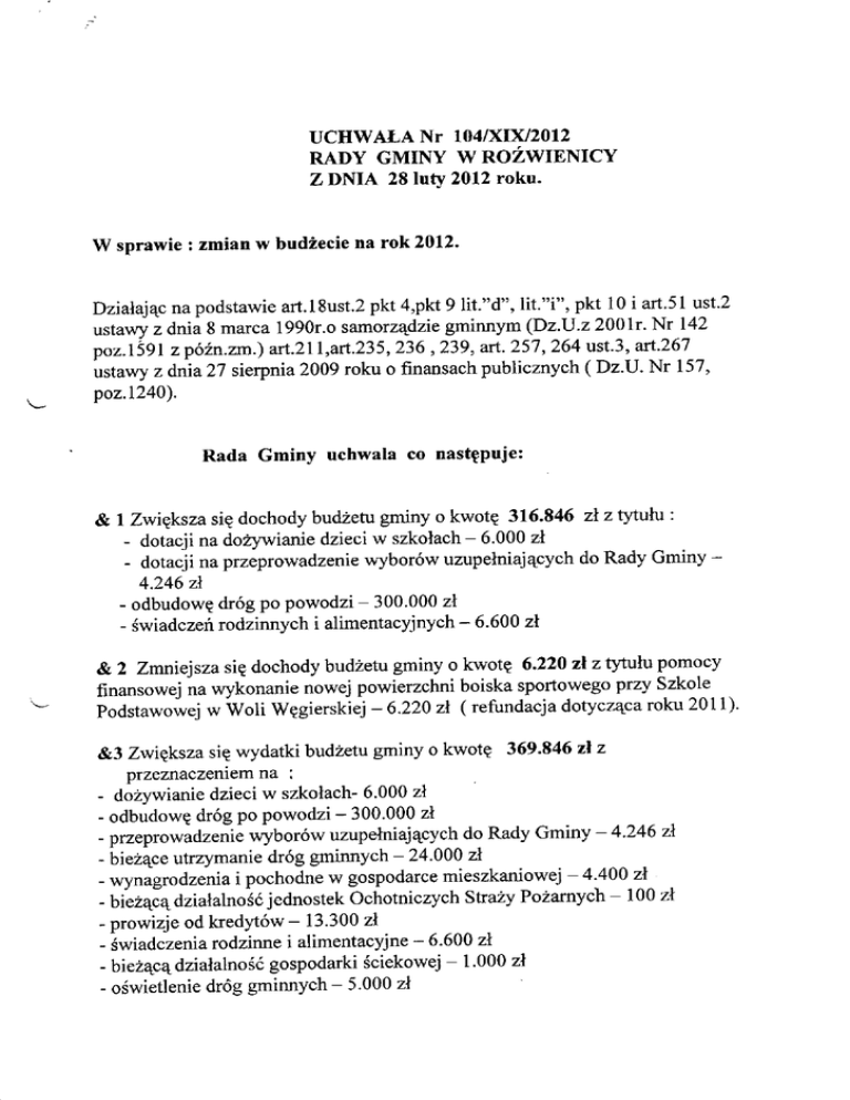 UCHWAŁA NR 104/XIX/2012 RADY GMINY W ROŹWIENICY z dnia