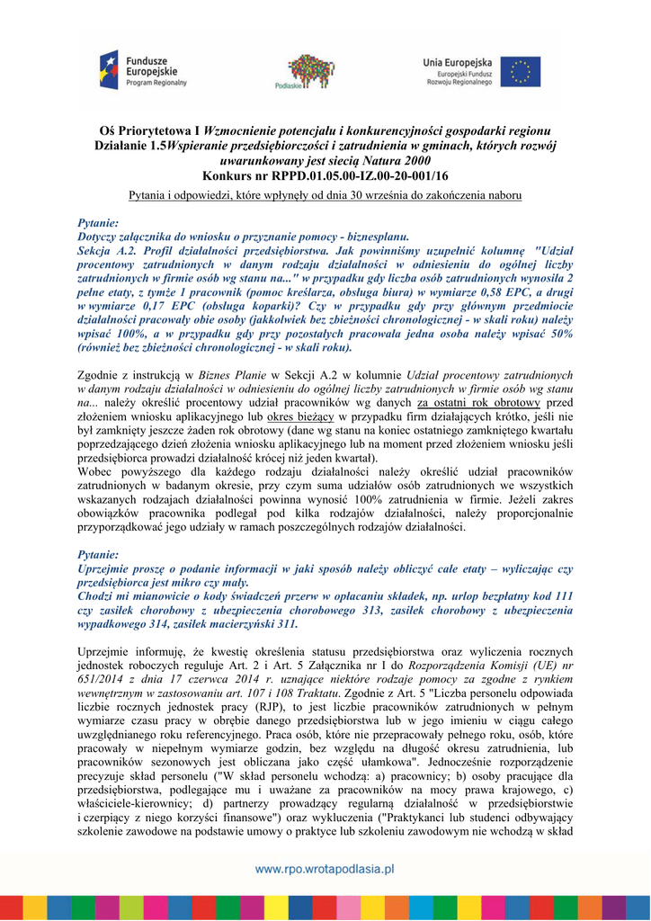 Pytania i odpowiedzi, które wpłynęły od dnia 30 września do zakończenia naboru
