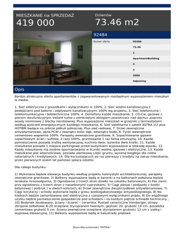 MIESZKANIE na SPRZEDAŻ 419 000 Dziwnów 73.46 m2 92484 Numer oferty 92484 73.46 1 ApartmentBuilding 3 2 2009 Adjoining Opis Bardzo atrakcyjna oferta apartamentów z zagwarantowanym niezbędnym wyposażeniem mieszkań w media: 1. Sieć elektryczna z gniazdkami i wyłącznikami w 100%, 2. Sieć wodno-kanalizacyjna z podejściami pod baterie i odpływami kanalizacyjnymi 100% wg projektu, 3. Sieć telefoniczna i telekomunikacyjna i teletechniczna 100%, 4. Domofony każde mieszkanie, 5. CO-Cw, gazowe z piecem dwufunkcyjnym Veilant turbo z zamkniętym obiegiem powietrza(z nad dachu) ,poprzez wsady kominowe z blachy nierdzewnej. Plus wyposażenie mieszkań w grzejniki z termostatami według wyliczeń energetycznych każdego mieszkania, 6. Sieć satelitarna z satelit ASTRA 1i2 plus HOTBIR będące na orbicie półkuli północnej. Plus sieć radiowa, 7. Drzwi zewnętrzne antywłamaniowe, okna PCW z zewnątrz kolor dąb, wewnątrz białe, 8. Tynki wewnętrzne cementowo wapienne 100%. Parapety wewnętrzne granitowe, 9. Szpachlowanie gipsem szpachlowym ścian i sufitów, 2 razy 100%, gruntowanie 1 raz farbą emulsyjną, 10. Każde pomieszczenie posiada kratkę wentylacyjną, kuchnia dwie, łazienka dwie kratki, 11. Każde mieszkanie posiada 1 miejsce parkingowe przed budynkiem wyposażone w blokadę wjazdu, 12. Każdy mieszkanie ma osobne opomiarowanie w liczniki wodne, gazowe i elektryczne, 13. Każde mieszkanie jest własnościowe, posiada ułamkową część gruntu, wycenę biegłego dla celów notarialnych i kredytowych, 14. Dla korzystających po raz pierwszy z kredytu na zakup mieszkania, przez pierwszych osiem lat państwo spłaca odsetki. Dla całego budynku: 1) Wykonana będzie elewacja budynku według projektu kolorystyki architektonicznej, parapety zewnętrzne granitowe, 2) Balkony wyposażone będą w barierki a na balkonach położona będzie terakota mrozoodporna, 3) Ogrodzenie z trzech stron działki na cokoliku betonowym, 4) Pas ziemi przy ogrodzeniu z trzech stron z nasadzonymi cyprysikami, 5) Ciągi piesze i podjazdy z kostki betonowej ( polbruk ) w dwóch kolorach, 6) Drzwi zewnętrzne dwuskrzydłowe antywłamaniowe, 7) Ciągi korytarzy i schody wykonane będą z gresu wielkogabarytowego antypoślizgowego, 8) Na klatkach będzie zamontowana sieć elektryczna z czasowymi wyłącznikami prądu, 9) Do wspólnego użytku będzie pomieszczenie gospodarcze pod schodami i na każdym piętrze schowek techniczny., 10) Budynek zbudowany, ściany i ścianki – ceramika. Pustaki ceramiczne Veinberger, stropy zbrojone żelbetowe B-20 ocieplane styropianem twardym, gęstość 20, grubość 10 cm, posadzka cementowa grubość 5 cm. Ściany zewnętrzne ocieplane styropianem grubości 12 cm z siatką i wyprawą elewacyjną, 11) Balkony wyposażone będą w balustrady prętowe Biuro Nieruchomości "PATRIA" Apartamenty w Dziwnowie !!! Stan deweloperski 5700 zł za m2 : stan wykończony 6323 za m2. I mieszkanie nr. 1 (kawalerka) -łazienka 4.14 m2 -pokój 18.90 m2 razem: 23.04 m2 II mieszkanie nr. 2 (3-pokoje) -przedpokój 4 m2 -pokój 8.40 m2 -pokój 12 m2 -pokój z aneksem 16.12 m2 -łazienka 4 m2 razem: 44.52 m2 III mieszkania nr. 3 ; 5 ; 7 (3-pokoje) -przedpokój 7.78 m2 -pokój 20.57 m2 -pokój 14.57 m2 -pokój z aneksem 25.14 m2 -łazienka 4.00 m2 -WC 1.40 m2 razem: 73.43 m2 IV mieszkania nr. 4 ; 6 (3-pokoje) -przedpokój 8.62 m2 -pokój 20.68 m2 -pokój 13.67 m2 -pokój z aneksem 28.68 m2 -łazienka 4 m2 -WC 1.40 m2 razem: 77.05 m2 Polecam !!! Biuro Nieruchomości "PATRIA" tel. 91 4886426, 91 4886427, 507 124 122 email: [email protected] Biuro Nieruchomości "PATRIA" Powered by TCPDF (www.tcpdf.org)