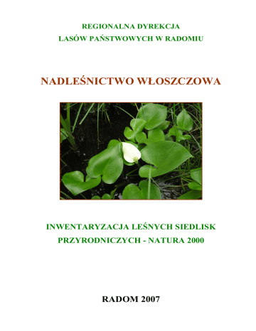 REGIONALNA DYREKCJA LASÓW PAŃSTWOWYCH W RADOMIU NADLEŚNICTWO WŁOSZCZOWA INWENTARYZACJA LEŚNYCH SIEDLISK PRZYRODNICZYCH - NATURA 2000 RADOM 2007 2 WYKONAWCA OPRACOWANIA Biuro Urządzania Lasu i Geodezji Leśnej Oddział w Radomiu Radom ul. 25 Czerwca 68 Tel: (48) 362 81 71 e-mail: [email protected] _____________________________________________________________________________ OPRACOWANIE TERENOWE I KAMERALNE mgr Jacek Koba ZASTĘPCA DYREKTORA ODDZIAŁU inŜ. Roman Eliasz DYREKTOR BIURA URZĄDZANIA LASU I GEODEZJI LEŚNEJ W RADOMIU mgr inŜ. Adam Wasiak 3 SPIS TREŚCI 1. CZĘŚĆ OGÓLNA..............................................................................................4. 1.1. Wstęp...................................................................................................................4. 1.2. Przedmiot i cel opracowania.............................................................................5. 1.3. Metodyka opracowania.....................................................................................5. 1.4. Ogólna charakterystyka przyrodnicza lasów nadleśnictwa...........................8. 1.5. Charakterystyka ogólna wyróŜnionych siedlisk przyrodniczych..................9. 2. CZĘŚĆ SZCZEGÓŁOWA...................................................................................12. 2.1. Szczegółowa charakterystyka wyróŜnionych siedlisk przyrodniczych.............12. 2. 1. 1. 9110 – Kwaśne buczyny...................................................................................12. 2. 1. 2. 9170 – Grąd środkowoeuropejski i subkontynentalny................................14. 2. 1. 3. 91D0 – Bory i lasy bagienne – siedlisko priorytetowe....................................16. 2. 1. 4. 91E0 – Łęgi wierzbowe, topolowe, olszowe i jesionowe - siedlisko priorytetowe.......................................................................................................18. 2. 1. 5. 91P0 – Jodłowy bór świętokrzyski .................................................................21. 2. 1. 6. 91T0 – Śródlądowy bór chrobotkowy ............................................................23. 2. 2. Bibliografia............................................................................................................26. 2. 3. Terenowe karty inwentaryzacyjne siedlisk przyrodniczych..............................27. 3. ZAŁĄCZNIKI I. Mapy przeglądowe Nadleśnictwa Włoszczowa w Skali 1 : 25 000 z naniesionymi konturami siedlisk przyrodniczych: II. - Obręb Leśny Oleszno (3. szt.) - Obręb Leśny Włoszczowa (3. szt.) Dokumentacja elektroniczna (zapisana na płycie CD): - warstwa siedlisk przyrodniczych (plik shp.) - część opisowa w postaci elektronicznej (plik doc.) - terenowe karty inwentaryzacyjne w postaci elektronicznej (plik xls.) 4 1. CZĘŚĆ OGÓLNA 1.1. Wstęp. 1 maja 2004 roku Polska stała się pełnoprawnym członkiem Unii Europejskiej. Oznacza to przyjęcie i respektowanie w naszym kraju prawa unijnego, w tym takŜe prawa dotyczącego ochrony przyrody. Głównymi aktami prawnymi w tej dziedzinie są dwie dyrektywy Rady EWG: Dyrektywa Ptasia (1979) oraz Dyrektywa Siedliskowa (1992). Zobowiązanie się przez nasz kraj do stosowania tych zapisów prawa unijnego jest równoznaczne z wymogiem utworzenia w obrębie granic Rzeczpospolitej Polskiej, Europejskiej Sieci Obszarów Chronionych Natura 2000. Lasy Państwowe jako podmiot zarządzający i chroniący przewaŜającą część potencjału przyrodniczego naszego kraju, stanowią jedno z najwaŜniejszych ogniw wdraŜania w praktyce systemu Natura 2000. W celu realizacji tego zadania, na podstawie Art. 13 ust. 1 Ustawy o Lasach wydane zostało Zarządzenie nr 31 Dyrektora Generalnego Lasów Państwowych z dnia 19 lipca 2006r. w sprawie ustalenia systemu okresowej powszechnej inwentaryzacji gatunków roślin, zwierząt, innych organizmów i siedlisk przyrodniczych, mających znaczenie wskaźnikowe przy ocenie stanu lasów oraz prognozowaniu zmian w ekosystemach leśnych (znak: ZO – 732 – 2 – 18/2006). Na jego podstawie 25 lipca 2006 roku Dyrektor Generalny Lasów Państwowych wydał Decyzję nr 61 w sprawie przeprowadzenia w roku 2006-2007 powszechnej inwentaryzacji siedlisk przyrodniczych oraz dzikiej fauny i flory (Znak: ZO – 732 2 – 19/2006), a 7 sierpnia 2006 Decyzję nr 63 wprowadzającą jednolity tekst Decyzji 61. W paragrafie 1 Decyzji nr 63 ustala się jako przedmiot decyzji przeprowadzenie powszechnej inwentaryzacji siedlisk leśnych i nieleśnych wyszczególnionych w Tab.1 i Tab.2 do w/w Decyzji. Zamieszczony w niniejszej Decyzji Załącznik nr 2 określa równieŜ ogólne propozycje dotyczące metodyki inwentaryzacji siedlisk przyrodniczych. Ostatnim dokumentem określającym podstawy opracowania jest Decyzja nr 5 z 30 stycznia 2007 r. (ZO-732-6-5/2007). Opracowanie niniejsze – Inwentaryzacja leśnych siedlisk przyrodniczych Natura 2000 na terenie Nadleśnictwa Włoszczowa, oparte zostało na podstawach prawnych zawartych w wymienionych powyŜej przepisach. Zostało ono wykonane w oparciu o Umowę Ekspercką o Dzieło zawartą w dniu 01 czerwca 2007 r. pomiędzy Nadleśnictwem Włoszczowa a Biurem Urządzania Lasu i Geodezji Leśnej w Warszawie Oddział w Radomiu. 5 1. 2. Przedmiot i cel opracowania. Definicja siedliska przyrodniczego jest zbliŜona do klasycznych w ekologii określeń ekosystemu lub biogeocenozy. „Siedlisko przyrodnicze” w rozumieniu Dyrektywy Siedliskowej jest to „obszar lądowy lub wodny, naturalny, półnaturalny lub antropogeniczny, wyodrębniony w oparciu o cechy geograficzne, abiotyczne i biotyczne”. Leśne siedliska przyrodnicze naleŜy rozumieć jako znajdujące się w stanie zbliŜonym do naturalnego lub zniekształcone ekosystemy: grądów, jedlin, buczyn, borów bagiennych, łęgów oraz borów suchych. Nie naleŜy natomiast utoŜsamiać siedliska przyrodniczego z typem siedliskowym lasu. Celem inwentaryzacji terenowej 