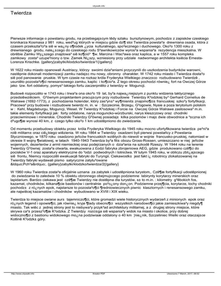 skrywa ca³± przesz³o¶æ K³odzka. Z Twierdzy rozci±ga siê wspania³y widok na miasto i okolice, przy dobrej