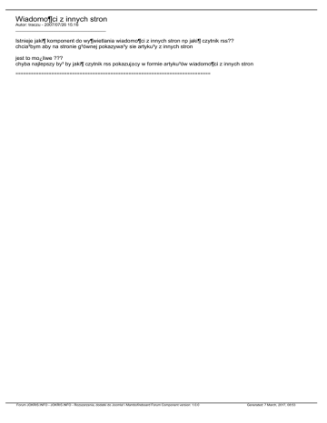 Wiadomo¶ci z innych stron Autor: traczu - 2007/07/26 15:16 _____________________________________ Istnieje jaki¶ komponent do wy¶wietlania wiadomo¶ci z innych stron np jaki¶ czytnik rss?? chcia³bym aby na stronie g³ównej pokazywa³y sie artyku³y z innych stron jest to mo¿liwe ??? chyba najlepszy by³ by jaki¶ czytnik rss pokazuj±cy w formie artyku³ów wiadomo¶ci z innych stron ============================================================================ Forum JOKRIS.INFO - JOKRIS.INFO - Rozszerzenia, dodatki do Joomla! i Mambofireboard Forum Component version: 1.0.0 Generated: 7 March, 2017, 08:53