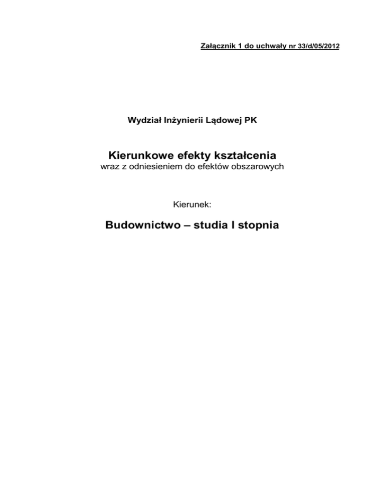 Kierunkowe efekty kształcenia Budownictwo – studia I stopnia