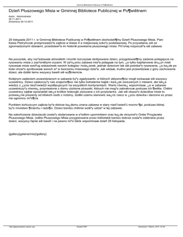25 listopada 2011 r. w Gminnej Bibliotece Publicznej w Po¶wiêtnem obchodzili¶my Dzieñ Pluszowego Misia. Pani