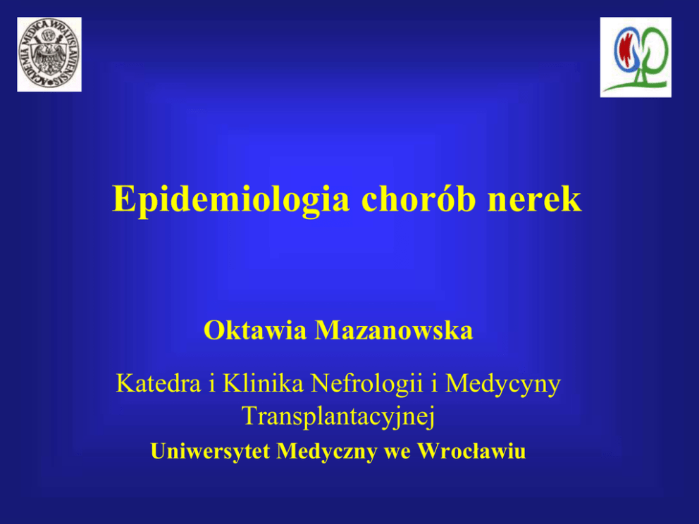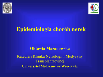Epidemiologia chorób nerek Oktawia Mazanowska Katedra i Klinika Nefrologii i Medycyny Transplantacyjnej Uniwersytet Medyczny we Wrocławiu 1. Choroby nerek jako problem społeczny 2. Przyczyny wzrostu zachorowań na choroby nerek 3. Definicja przewlekłej choroby nerek i jej stadia 4. Przydatność oznaczania i wyliczania filtracji kłębuszkowej GFR 5. Objawy chorób nerek Choroby nerek jako problem społeczny – występowanie PChN • PChN dotyczy 6-15% populacji; ok. 600 mln osób • Anglia - 5-10% dorosłych umiarkowaną do ciężkiej PChN (stadia 3-5) [NEOERICA -wczesne lata 2000, publik. 2007) - 10.6% K, 5.8% M, śr 8.5%; Health Survey for England (2009) - 7% K, 5% M, śr 6%] • Częstość występowania PChN jest podobna w krajach z przewagą rasy kaukaskiej • Wg danych z USA częstość występowania PChN jest rosnąca. Choroby nerek jako problem społeczny • • • • Przewlekła choroba nerek (PChN) ma charakter „epidemii” ogólnoświatowej – co roku o 6-8% wzrasta liczba chorych leczonych nerkozastępczo dializami. W ciągu ostatnich 20 lat ponad 5-krotnie wzrosła liczba osób dializowanych na świecie (ok.1,5 mln/świat, ok. 14 tys./Polska) Ponad 5-krotnie wzrosły także nakłady pieniężne na dializoterapię i KTx (USA 32 mld $/w 2004 r). Koszty RRT w Polsce – ok. 1,5 mld PLN/rok Trend wzrostowy liczby osób dializowanych jak i nakładów na dializoterapię nadal się utrzymuje. Health Survey for England 2009, CKD prevalence by age group and gender 40 36% 35 31% 30 25 Men 20 Women 15 12% 13% 10 6% 5 1% 2% 2% 0 16-54 55-64 Source: Health Survey for England 2009 65-74 75+ Choroby nerek jako problem społeczny Stan socjo-ekonomiczny • Ludzie ubodzy częściej zapadają na PChN, a przebieg PChN w tej grupie jest szybszy. Rasa • Azjaci i A-A mają podobną częstość PChN jak inne grupy etniczne, ale progresja PChN jest szybsza i częściej wymagają leczenia nerkozastepczego (A-A 3,5x większe ryzyko SNN) • FSGS, nefropatia cukrzycowa i nadciśnieniowa – częściej u A-A, IgAN częstsza u Azjatów Prognozowany wzrost liczby ludzi z PChN -UK 450 000 403 449 Estimated number of people with CKD 400 000 350 000 300 000 265 867 245 491 250 000 200 000 164 650 131 709 150 000 100 000 Wales 80 112 Scotland 50 000 N Ireland - 2010 2015 2020 2025 Source: modelled estimates HSE 2009, Pop projections ONS 2030 2035 Co jest ważne ? • PChN jest częstym powodem chorobowości i śmiertelności • Przebieg często jest bezobjawowy i może współistnieć z innymi przyczynami • PChN ma charakter postępujący do SNN • Ważne jest wczesne rozpoznanie i wdrożenie leczenia • Wiek, płeć, rasa, warunki socjalne mają wpływ na występowanie PChN. Choroby nerek jako problem społeczny Istnieje możliwość spowolnienia progresji PChN poprzez leczenie nefroprotekcyjne i zmianę stylu życia. Niedorozpoznanie wczesnych stadiów PChN z powodu: – Późnego zgłaszania się do nefrologa – Stratę możliwości poprawy losu pacjentów • Przyczyny wzrostu zachorowalności na choroby nerek • Epidemia chorób o znaczeniu społecznym: cukrzyca i nadciśnienie tętnicze • Nadwaga i otyłość z powikłaniami narządowymi (choroby sercowo-naczyniowe, zespoły metaboliczne, miażdżyca, a nawet FSGS • Starzenie się społeczeństwa (ubytek nefronów) • Rozwój chirurgii i kardiochirurgii - w tym dużych zabiegów u chorych wysokiego ryzyka i starszych • Stosowanie środków kontrastowych w diagnostyce i kardiologii interwencyjnej (PTCA) • Leki (NLPZ + inhibitory ACE ) • Pozorny wzrost wykrywalności PChN ? (eGFR?) PChN (ang. chronic kidney disease CKD) to stan, w którym spełnione jest > 1 z poniższych kryteriów: • Uszkodzenie nerek utrzymujące się > 3 mies., definiowane jako obecność strukturalnych lub czynnościowych nieprawidłowości nerek, z prawidłowym lub zmniejszonym GFR, co objawia się nieprawidłowościami morfologicznymi lub markerami uszkodzenia nerek, w tym nieprawidłowościami w składzie krwi lub moczu, lub nieprawidłowymi wynikami badań obrazowych • Przy GFR<60 ml/min/1,73 m2 przez >3 miesiące, z uszkodzeniem nerek albo bez uszkodzenia nerek Stadium 1 i 2 wymagają obecności białkomoczu, albuminurii lub erytrocyturii lub zmian strukturalnych nerek Siećwspółpracy StadiaPChNwoparciu o eGFR Stadium 3A: eGFR 45-59 i stadium 3B: 30-44 ml/min/1,73m2 (NICE) eGFR (mL/min/1.73m2) Stadium Opis 1 •prawidłowe lubeGFR 2 •Łagodne eGFR 60 - 89 3 •Umiarkowane eGFR 30 - 59 4 •Bardzo duże eGFR 15 - 29 5 •Niewydolność nerek •Uszkodzenie nerek* >90 <15 lub dializa * Uszkodzenie nerek definiowane jest przezNKF jako “patologiczneodchylenia lub markeryuszkodzenia, włączając nieprawidłowe wyniki badań krwi i moczu lub badań obrazowych” WgNKF K/DOQI Clinical Practice Guidelines 2002: AmJ Kidney Dis2002; 39 (2, Suppl 1): S17-S31 6 Epidemiologia chorób nerek w Polsce • ok. 4,2 mln ma PChN =10-13% (ekstrapolowanie na Polskę wyniki badania NHANES III/USA) • Badanie PolNef 2002: 18,4% badanych (albuminuria/eGFR) • ilość chorych i nakłady stale rosną (5x w ciągu 20 lat) • dializowani: 16,5 tys. (343 osoby/1 mln) • ponad 7 tys. osób żyje z przeszczepioną nerką; • ponad 1 tys. przeszczepów rocznie (1113/2013 r. ; 23,6 KTx na 1 mln/rok) Częstość PChN - badanie „Uwaga nerki” WARSZAWA (465 osób) Kobiety KRAKÓW (712 osób) Mężczyźni wiek Mężczyźni wiek 23 (10%) 33 ± 13 115 (73%) 52 ± 15 338 (69%) 159 (71%) 53 ± 15 57 (18%) 18 (11%) 66± 14 42 (19%) 67± 12 St. IV 3 (1%) 1 (0,6%) 84± 4 1 (0,4%) 81 St. V - - Razem 208 157 St. I 33 (11%) 23 (15%) St. II 215 (70%) St. III 33 ± 15 Kobiety 35 (7%) 114 (23%) 52 ± 18 Dane zaokraglone do pełnych liczb Król E., Rutkowski B., Nephrol Dial Pol 2009; 13: 198 54,5 ± 17 Wskaźniki czynności nerek • Stężenie kreatyniny w surowicy (sCr) jest łatwe do zmierzenia, jednak nie informuje o faktycznym stanie czynności nerek, bo na wynik wpływ 