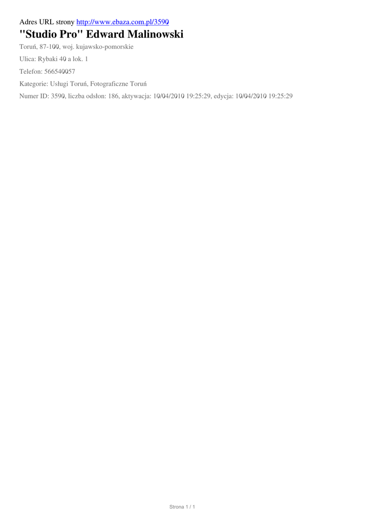 "Studio Pro" Edward Malinowski, Torun, Rybaki 40 a