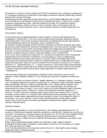 29 września br. w Bukówcu Górnym odbył się XVIII Gminny Jarmark Rolniczy połączony z jubileuszową