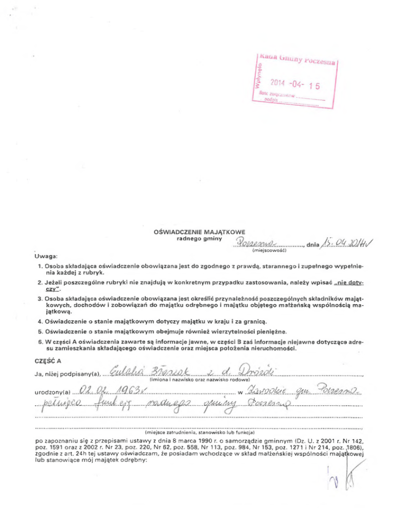 1. Osoba składająca oświadczanie obowiązana jest do zgodnego z prawdą, starannego i zupełnego wypełnie