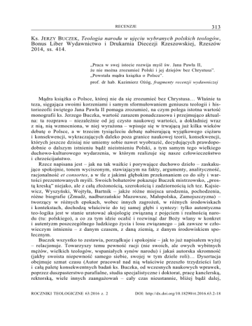 313 Ks. JERZY BUCZEK, Teologia narodu w uje˛ciu wybranych