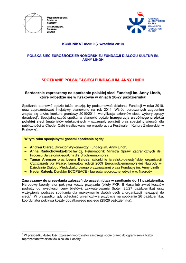 Komunikat 8/2010 - Fundacja im. Anny Lindh