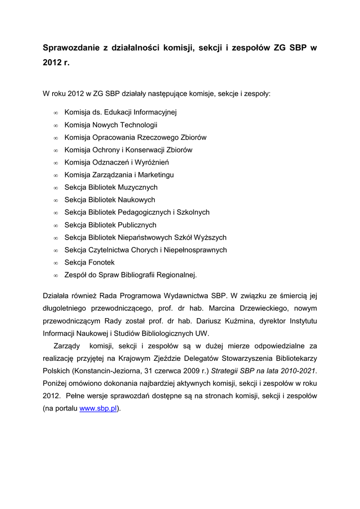Sprawozdanie z działalności komisji, sekcji i zespołów ZG SBP w
