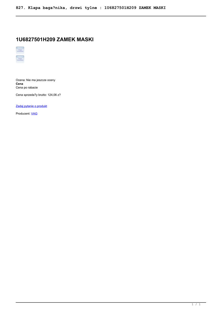 827. Klapa bagażnika, drzwi tylne : 1U6827501H209 ZAMEK MASKI