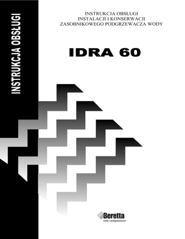 d INSTRUKCJA OBSŁUGI INSTALACJI I KONSERWACJI ZASOBNIKOWEGO PODGRZEWACZA WODY kot³y i podgrzewacze kot³y i podgrzewacze INSTRUKCJA OBS£UGI 1. Uwagi dla użytkownika -Po rozpakowaniu urządzenia upewnić się, czy zawartość jest kompletna. W przypadku jakichkolwiek braków zwrócić się do punktu, w którym urządzenie zostało zakupione. -Podgrzewacz powinien być wykorzystywany zgodnie ze swoim przeznaczeniem. Niewłaściwa instalacja może prowadzić do wypadków lub strat materialnych, wykluczona jest jednak odpowiedzialność producenta/importera za szkody wynikłe z błędnej instalacji lub użytkowania, bądź nieprzestrzegania wskazań producenta. -W przypadku wycieków wody zamknąć zasilanie hydrauliczne (zimna woda) i wezwać Autoryzowany Serwis Beretta -W przypadku dłuższej nieobecności zaleca się przeprowadzenie następujących czynności: -Ustawić kocioł w pozycji OFF -Zakręcić zawory odcinające zasobnik od instalacji -W przypadku zagrożenia zamarzaniem, opróżnić podgrzewacz i instalację z wody -Konserwacja podgrzewacza powinna być przeprowadzana przynajmniej raz w roku -Niniejsza instrukcja stanowi integralną część wyposażenia podgrzewacza. Należy upewnić się, czy jest ona zawsze na wyposażeniu urządzenia, także w przypadku odsprzedaży innemu właścicielowi lub przeprowadzki, tak aby zawsze mogła być wykorzystane przez użytkownika, instalatora lub Autoryzowany Serwis Beretta. Należy pamiętać, że użytkowanie urządzeń wykorzystujących energię elektryczną i wodę pociąga za sobą wymóg przestrzegania następujących zasad bezpieczeństwa: -Zabrania się dotykania urządzenia będąc bez obuwia lub wilgotnymi albo mokrymi częściami ciała -Zabrania się wykonywania jakiejkolwiek czynności technicznej przed odłączeniem urządzenia od zasilania elektrycznego -Zabrania się jakichkolwiek modyfikacji urządzenia -Zabrania się ciągnięcia, szarpania etc. przewodów wychodzących z urządzenia, nawet jeśli nie są podłączone do sieci elektrycznej -Zabrania się wystawiania urządzenia na działanie warunków atmosferycznych. Po rozpakowaniu należy upewnić się czy urządzenie jest nieuszkodzone. Elementy opakowania ( karton, worki plastikowe, styropian) nie powinny być dostępne dla dzieci jako źródło ewentualnego zagrożenia. 2. Wstęp Instrukcja zawiera wskazówki i zalecenia dotyczące warunków montażu, eksploatacji i prawidłowej obsługi urządzenia. Ich przestrzeganie zapewni długotrwałe i niezawodne działanie podgrzewacza. Wytwórca zastrzega sobie prawo wprowadzania zmian w budowie podgrzewacza, których nie obejmuje niniejsza instrukcja, a nie wpływają one na cechy techniczne i użytkowe wyrobu. Podgrzewacz jest przeznaczony do współpracy z wiszącymi, grzewczymi kotłami jednofunkcyjnymi Beretta z wbudowanym zaworem trójdrogowym typu: Super Exclusive Green 26 S esi, Super Kompakt 12/24 Si, Super Exclusive 24Si, Super Exclusive 29Si. PODGRZEWACZ IDRA 60 NIE JEST PRZEZNACZONY DO WSPÓŁPRACY Z KOTŁAMI STOJĄCYMI VENUS! 3. Opis urządzenia 3.1 Wiadomości ogólne Podgrzewacz wody należy do nowoczesnych rozwiązań zaopatrzenia w ciepłą wodę użytkową mieszkań, domów jednorodzinnych oraz obiektów użyteczności publicznej, w których znajduje się kilka punktów poboru ciepłej wody użytkowej. Ciepło potrzebne do nagrzania wody użytkowej uzyskuje się dzięki gorącej wodzie z kotła, przepływającej przez wężownicę, która znajduje się wewnątrz podgrzewacza 3.2 Obudowa Obudowę stanowi blacha lakierowana proszkowo. 3.3 Izolacja cieplna Podgrzewacz posiada na całej swej powierzchni izolację z bezfreonowej pianki poliuretanowej. 3.4. Ochrona antykorozyjna Zbiornik podgrzewacza jest wykonany z blachy ze stali nierdzewnej. Dodatkowe zabezpieczenie antykorozyjne stanowi anoda magnezowa. 3.5. Wyposażenie Podgrzewacz fabrycznie wyposażony jest w sondę NTC. Jest gotowy do współpracy z kotłami kondensacyjnymi Super Exclusive Green 26 S esi. Dodatkowo na wyposażeniu znajduje się: -zawór odcinający -rama montażowa z przyłączami W celu podłączenia do pozostałych modeli kotłów wymienionych w punkcie 2 należ zastosować kit termostatu o kodzie 1101069. 5. Wstępne czynności sprawdzające Sprawdzić, czy podgrzewacz wraz z przyłączami, nie został uszkodzony podczas transportu. 6. Podłączenie elektryczne podgrzewacza z kotłem Podłączenie elektryczne może wykonywać wyłącznie Autoryzowany Serwis Beretta. Schemat ideowy podłączeń elektrycznych jest zawarty w instrukcji serwisowej kotłów Beretta. y Sondę termostatu umieścić wg. schematu w miejscu oznaczonym TB. 4. Miejsce ustawienia Pojemnościowy podgrzewacz należy zawiesić w pomieszczeniu, w którym temperatura nie spada poniżej 0 oC. Zaleca się zawieszenie podgrzewacza jak najbliżej kotła. Podgrzewacz należy instalować tylko w pozycji pionowej. 25mm 25 25 25mm 7. Zawór bezpieczeństwa Zasobnik jest wyposażony seryjnie w zawór bezpieczeństwa. Podczas montażu należy się upewnić, że ewentualne otwarcie zaworu bezpieczeństwa, nie będzie stanowiło zagrożenia dla osób znajdujących się w pobliżu zaworu. 8. Zawór zwrotny W instalacji należy zamontować zawór zwrotny, który będzie zapobiegać cofaniu się podgrzanej wody do przewodu wody zimnej. 9. Zawór odcinający Należy zamontować zawory odcinające. 10. Reduktor ciśnienia 370 mm 200 Zalecamy montaż reduktora ciśnienia za licznikiem wody, aby w przewodach ciepłej zimnej wody w budynku zapewnić stałe ciśnienie robocze instalacji. INSTRUKCJA OBS£UGI 11. Zdejmowanie pokrywy inspekcyjnej Pokrywa może być zdjęta w celu inspekcji wnętrza zasobnika oraz kontroli anody magnezowej. -Zakręć zawory zimnej wody użytkowej i opróżnij zasobnik poprzez zawór spustowy -Odkręć nakrętkę i wyjmij anodę (1) -Poluzuj lub odkręć zewnętrzne nakrętki pokrywy inspekcyjnej (2) i zdejmij je -Oczyść wnętrze zasobnika -Sprawdzić st