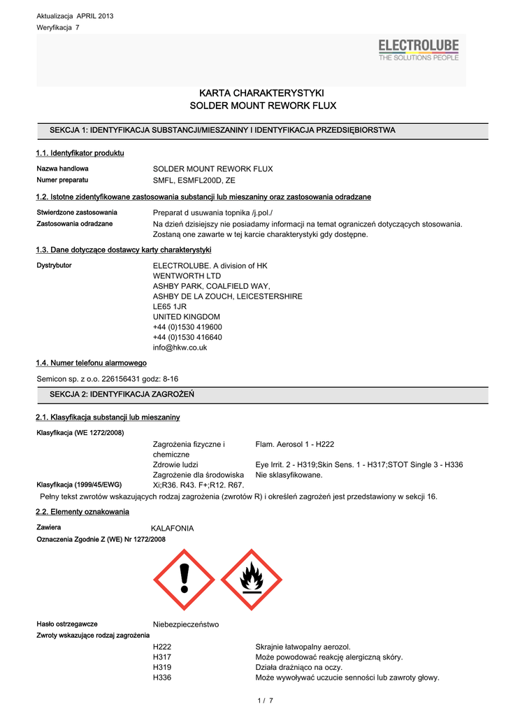 KARTA CHARAKTERYSTYKI SOLDER MOUNT REWORK FLUX