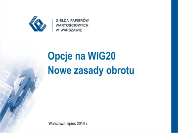 Opcje na WIG20 Nowe zasady obrotu Warszawa, lipiec 2014 r. Zmiany w zasadach notowania opcji na WIG20 Zmiany w zasadach notowania opcji na WIG20 wprowadzone uchwałą Nr 804/2014 Zarządu Giełdy z dnia 14 lipca 2014 r. obejmują: • Zmianę cyklu wygasania (zwiększa się z 4 do 6 terminów wg których wygasają opcje na WIG20), • Nowe zasady określania wartości oraz liczby dostępnych kursów wykonania. Zmiany wchodzą w życie z dniem 18 sierpnia 2014 r. 2 Zmiana cyklu wygasania (1) Cykl wygasania przed zmianą: 4 najbliższe miesiące z cyklu marzec, czerwiec, wrzesień, grudzień: W obrocie w każdej chwili dostępne są opcje wygasające w 4 terminach, Opcje wygasają co 3 miesiące, Poniższy schemat prezentuje terminy wygasania które są dostępne przed zmianą cyklu wygasania (przed 18 sierpnia 2014 r.) 3 mies. 3 mies. 3 mies. 3 Zmiana cyklu wygasania (2) Obecnie po wygaśnięciu danej serii opcji do obrotu są wprowadzane kolejne serie wygasające za 12 miesięcy. wygasa za 12 miesięcy wygasa za 12 miesięcy wygasa za 12 miesięcy wygasa za 12 miesięcy 4 Zmiana cyklu wygasania (3) Cykl wygasania po zmianie: 3 najbliższe miesiące KALENDARZOWE plus 3 kolejne miesiące z cyklu marzec, czerwiec, wrzesień, grudzień. W obrocie w każdej chwili dostępnych będzie 6 terminów, Pierwsze 3 terminy wygasają co miesiąc; kolejne 3 terminy będą wygasały co 3 miesiące, W każdej chwili w obrocie dostępne będą opcje o terminie do wygaśnięcia do 1 miesiąca. 5 Zmiana cyklu wygasania (4) Poniższy schemat prezentuje terminy wygasania które będą dostępne po zmianie cyklu (po 18 sierpnia 2014 r.) 1 mies. 1 mies. 3 mies. 3 mies. W dniu 18 sierpnia 2014 roku obecny cykl wygasania zostanie uzupełniony o dwa dodatkowe terminy: • październik 2014, • listopad 2014. 6 Zmiana cyklu wygasania (5) Zgodnie z nowym cyklem po wygaśnięciu serii które NALEŻĄ do cyklu kwartalnego do obrotu wprowadzane są serie wygasające za 12 miesięcy, natomiast po wygaśnięciu serii które NIE należą do cyklu kwartalnego do obrotu wprowadzane są serie wygasające za 3 miesiące. wygasa za 12 miesięcy wygasa za 3 miesiące wygasa za 3 miesiące wygasa za 12 miesięcy wygasa za 3 miesiące wygasa za 3 miesiące wygasa za 12 miesięcy 7 Więcej oznaczeń miesięcy wykonania (1) Wraz z pojawieniem się nowych miesięcy wygasania w nazwie skróconej dla opcji na WIG20 zostaną po raz pierwszy użyte nowe literowe oznaczenia dla miesięcy wykonania. Struktura nazwy skróconej jest następująca: OW20krrcccc gdzie: O - opcja, W20 - indeks bazowy WIG20, k - kod określający typ i miesiąc wykonania opcji, rr - dwie ostatnie cyfry roku wygaśnięcia, cccc - kurs wykonania. 8 Więcej oznaczeń miesięcy wykonania (2) Poniższa tabela prezentuje oznaczenia miesięcy wykonania dla wszystkim miesięcy kalendarzowych. Na czerwono zaznaczono te które będą używane po raz pierwszy. Miesiąc Kod opcji kupna Kod opcji sprzedaży styczeń A M luty B N marzec C O kwiecień D P maj E Q czerwiec F R lipiec G S sierpień H T wrzesień I U październik J V 9 Nowe wartości kursów wykonania (1) Różnice pomiędzy kursami wykonania PRZED zmianą: Numer terminu Różnice pomiędzy wygaśnięcia kursami wykonania* Najbliższy z cyklu marcowego 1 50 3 kolejne z cyklu marcowego 2 100 3 100 4 100 Termin wygaśnięcia * Przedstawiono te różnice które dotyczą kursów wykonania o wartościach powyżej 1000 pkt. Więcej szczegółów w standardzie opcji. 10 Nowe wartości kursów wykonania (2) Różnice pomiędzy kursami wykonania PO zmianie: Numer terminu Różnice pomiędzy wygaśnięcia kursami wykonania* Opcje wygasające w 1 25 miesiącach kalendarzowych 2 50 3 50 Opcje wygasające w 4 100 miesiącach cyklu marcowego 5 100 6 100 Termin wygaśnięcia * Przedstawiono te różnice które dotyczą kursów wykonania o wartościach powyżej 1000 pkt. Więcej szczegółów w standardzie opcji. 11 Nowe wartości kursów wykonania (3) Przykładowe wartości pomiędzy kursami wykonania po zmianie. Kursy wykonania … 2300 2325 2350 2375 2400 2425 2450 2475 2500 2525 2550 2575 2600 … Dla opcji o najbliższym terminie wygaśnięcia. 1 … x x x x x x x x x x x x x … Dla opcji o dwóch kolejnych terminach wygaśnięcia. Dla opcji o trzech najdalszych terminach wygaśnięcia. Nr terminu wygaśnięcia 2 3 4 … … … x x x x x x x x x x x x x x … x … 5 … x 6 … x x x x x x x x … x … x … 12 Nowe wartości kursów wykonania (4) Z uwagi na zmniejszenie różnic pomiędzy kursami wykonania oraz zwiększenie dostępnych terminów wygasania istotnie zwiększy się liczba notowanych serii opcji, Tabela na kolejnym slajdzie prezentuje jaka będzie minimalna liczba notowanych serii opcji. 13 Nowe wartości kursów wykonania (5) Termin wygaśnięcia Nr terminu wygas. Opcje kupna Minimalna liczba serii OTM ATM ITM 16 1 16 Opcje sprzedaży Minimalna liczba serii OTM ATM ITM 16 1 16 Dla opcji o najbliższym terminie wygaśnięcia 1 Dla opcji o dwóch kolejnych terminach wygaśnięcia 2 8 1 8 8 1 8 3 8 1 8 8 1 8 Dla opcji o trzech najdalszych terminach wygaśnięcia 4 4 1 4 4 1 4 5 4 1 4 4 1 4 6 4 1 4 4 1 4 18 18 18 RAZEM 44 6 44 44 6 44 188 OTM, ATM, ITM – oznacza odpowiednio opcje out-of-the-money, at-the-money, oraz in-the-money. RAZEM 66 34 34 14 Giełda Papierów Wartościowych w Warszawie SA ul. Książęca 4, 00-498 Warszawa tel. (022) 628 32 32, fax (022) 628 17 54, 537 77 90 [email protected]